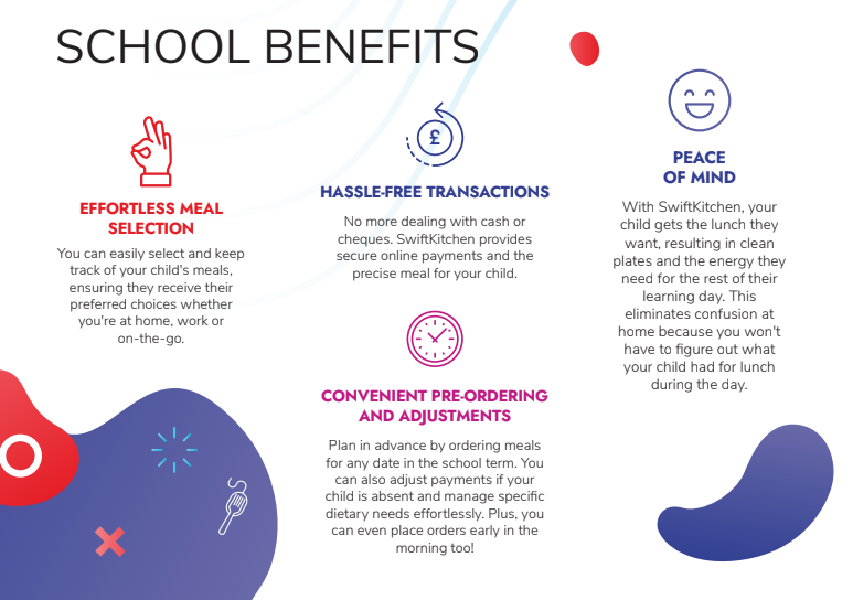 We are using a system called Swift Kitchen which is an app allowing you to order your child's meals from home.